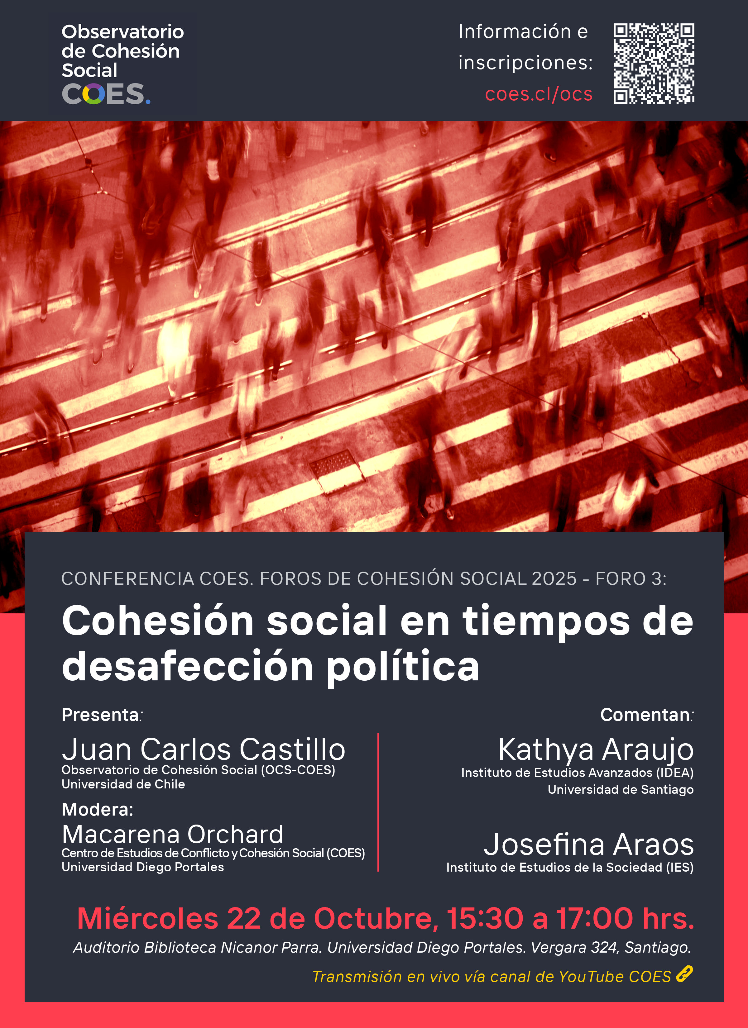 El Observatorio de Cohesión Social (OCS) es una plataforma dedicada a la difusión de conocimiento basado en evidencia empírica sobre las dinámicas de cohesión social.